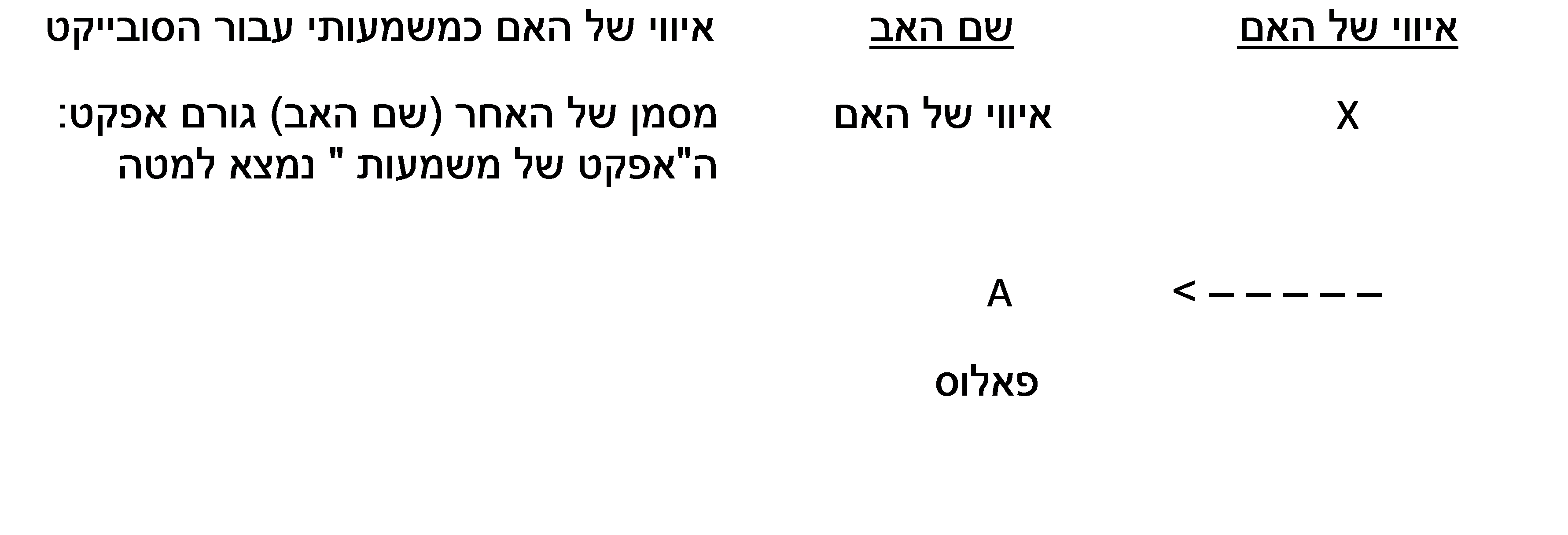 במילים אחרות: אם האיווי של האם היה בעמדה של חידה (X), המטפורה האבהית נותנת פתרון – מסוים – בכך שהיא מציעה לסובייקט להחליף את ה-X ובמקומה למקם את המסמן S, שֵם האב, שמשמעותו אינה חידה, אלא: הפאלוס.